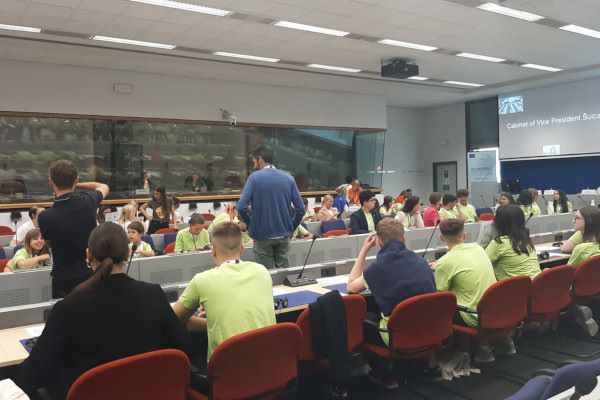 Nel corso della seconda giornata era in programma il lavoro in sottogruppi. Cinque le tematiche proposte: 1. diritti dell’infanzia e dell’adolescenza; 2. cambiamento climatico e sostenibilità; 3. protezione dalla violenza; 4. povertà infantile (e child-guarantee); 5. co-creazione di consultazioni. Tutti i ragazzi di Agia hanno scelto il tema della povertà infantile, sono stati quindi organizzati in sottogruppi e hanno redatto alcune raccomandazioni che poi sono stati invitati a leggere in occasione della riunione plenaria conclusiva. Al termine dei lavori dell’Assemblea la delegazione della Consulta dell’Autorità garante ha incontrato Giuseppe Buffone, magistrato distaccato per il Ministero della giustizia presso la Rappresentanza permanente d’Italia in seno all’Unione europea. Nel corso dell’incontro i ragazzi si sono confrontati in una discussione intorno a temi d’interesse per gli Stati membri dell’UE, focalizzando la loro attenzione in particolare sulla pulizia delle città in relazione alla difesa dell’ambiente.