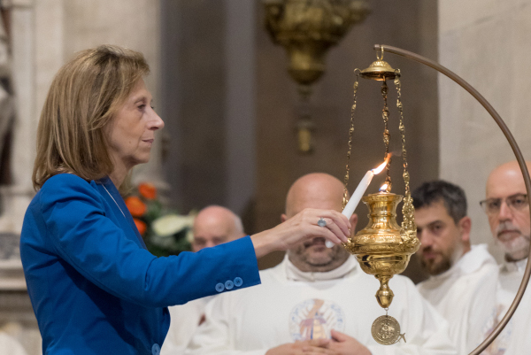 Al termine del convegno si è svolta la messa solenne nella Basilica della Santa Casa, con l’accensione della Lampada della pace da parte di Carla Garlatti.