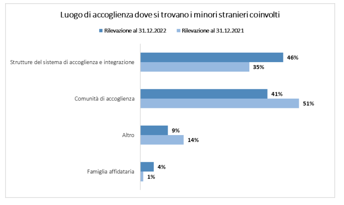 “Dal rapporto emerge che già al termine del 2022 i minori stranieri non accompagnati sono aumentati del 63,5% rispetto al 2021, toccando quota 20.089. L’incremento è in gran parte dovuto alla presenza di un considerevole numero di minori ucraini arrivati nel nostro Paese a seguito del conflitto nato a febbraio del 2022”, commenta Garlatti. “La percentuale più cospicua di minorenni stranieri (46%) è ospite di una struttura di accoglienza della rete Sai, ma aumenta il dato dei minorenni in affido familiare, che passa dall’1% al 4%. Va detto però che quest’ultimo dato è condizionato dalla presenza dei minorenni ucraini, per i quali è stato fatto ricorso spesso a tale istituto. In ogni caso, questa crescita incoraggia a valorizzare l’affido dei minori stranieri non accompagnati, anche attraverso nuove iniziative da mettere in campo avvalendosi dei fondi europei gestiti dal Ministero dell’interno”.