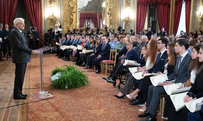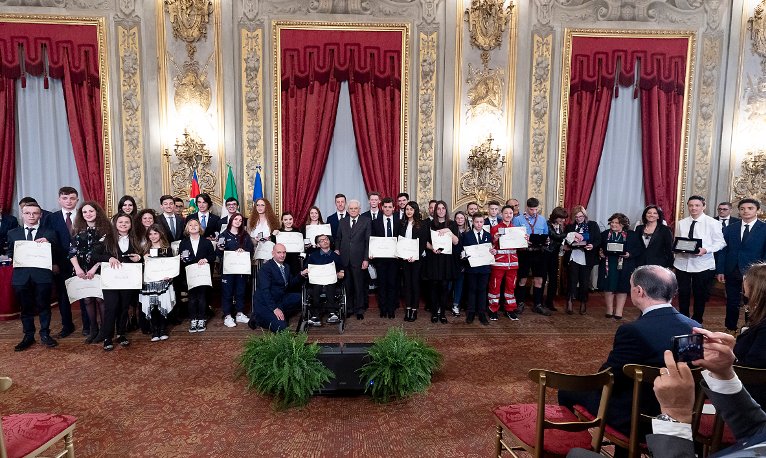 Alfieri per atti di coraggio, volontariato e solidarietà. Ci sono Luigi (Accumoli, Rieti), che ha dato prova di grande coraggio nei momenti drammatici del terremoto del 24 agosto del 2016 e Tancredi (Washington, USA), che ha salvato un uomo che rischiava di annegare in mare. Ci sono poi Jasmine (Prato), Angelica (Roma) e Alberto (Firenze), fortemente impegnati in attività di volontariato e in azioni concrete di solidarietà verso il prossimo. Ci sono infine Celeste (Cupra Marittima, Ascoli Piceno), che partecipa ad attività di attenzione verso chi vive in condizioni di fragilità, Anna (Napoli), che presta servizio in una mensa per anziani e ha svolto attività di tutoraggio per i coetanei in difficoltà e Jacopo (Rimini) che ha contribuito alla realizzazione di eventi di sensibilizzazione e raccolta fondi.