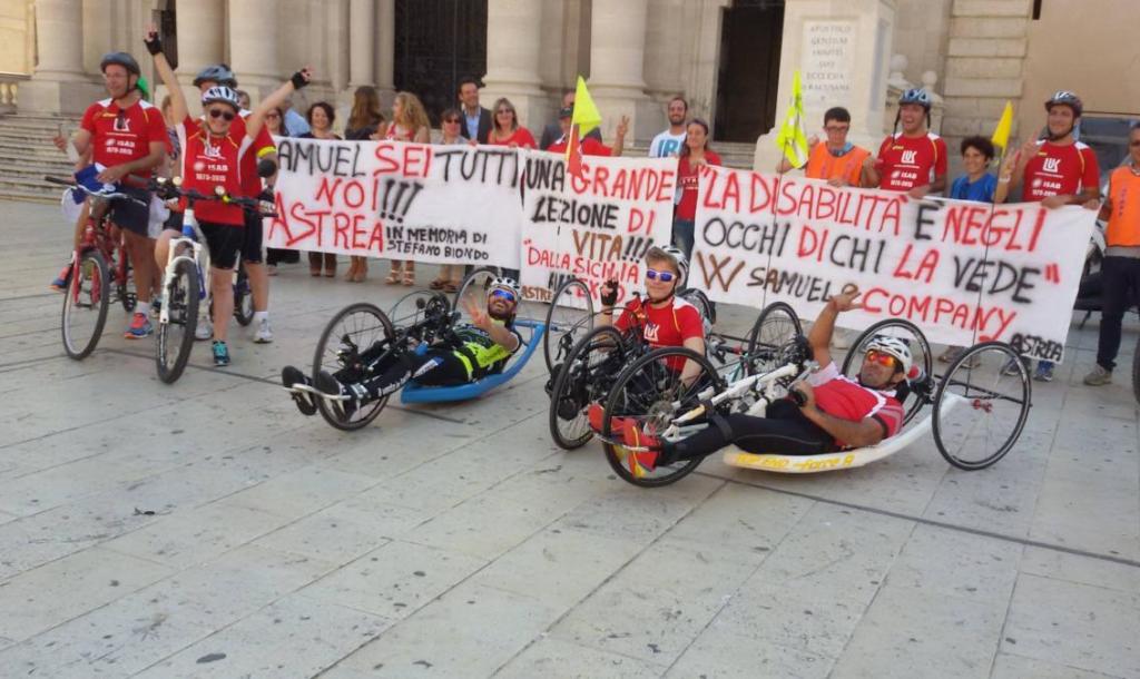 Tappa dopo tappa ho avuto l’opportunità di parlare con le amministrazioni delle città attraversate, per sensibilizzarle affinché potessero adoperarsi nel rimuovere le barriere architettoniche lungo le strade. E dentro le città abbiamo incontrato tantissime persone che chiedevano cosa stavamo facendo e ho potuto far capire loro che la disabilità sta solo negli occhi di chi guarda, infatti erano in molti ad avvicinarsi a noi con curiosità, guardavano i nostri mezzi “handbike” e non realizzavano che eravamo ragazzi in carrozzina. Poi, quando spiegavamo loro cosa stavamo facendo e perché, allora rimanevano stupiti ma anche ammirati; abbiamo fatto comprendere che la disabilità non è una qualità legata alla persona che ha la difficoltà ma è qualcosa che ha a che fare con l’ambiente che ci circonda e che purtroppo non è adeguato a dare pari opportunità a tutti, di conseguenza chi ha un problema e non trova l’ambiente privo di barriere si trova in svantaggio. Ed è dallo svantaggio che nasce la disabilità. Ho avuto anche l’opportunità di diffondere il mio messaggio attraverso i mass media che ci hanno seguito.