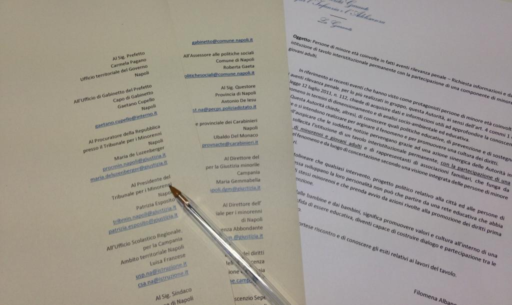 “Istituire un tavolo interistituzionale permanente, con la partecipazione di una componente di minorenni e giovani adulti e di rappresentanti di associazioni familiari”, quale centro di osservazione e monitoraggio del fenomeno della devianza minorile e luogo di concertazione di politiche di intervento. Lo sollecita l’Autorità garante per l’infanzia e l’adolescenza in una nota indirizzata alle istituzioni locali in relazione ai recenti eventi di cronaca avvenuti a Napoli, “che hanno visto come protagonisti persone di minore età coinvolte in fatti aventi rilevanza penale, per lo più realizzati in gruppo”.