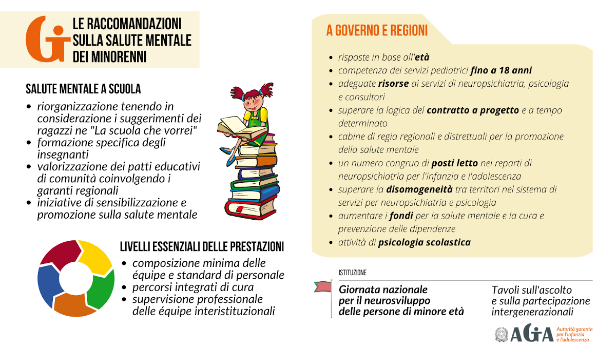 “Tra di esse c’è innanzitutto la necessità che le azioni di programmazione, prevenzione e cura superino la frammentarietà regionale e locale. La fase post pandemica può essere un’occasione straordinaria per farlo e in generale per migliorare il sistema. Ma non c’è tempo da perdere”, avverte Garlatti. “Vanno previste adeguate risorse per i servizi, fornite risposte specifiche in base all’età, va garantito un numero di posti letto in reparti dedicati ai minorenni e istituiti servizi di psicologia scolastica in modo da attivare un collegamento tra scuola e territorio. È altrettanto importante operare un cambiamento culturale intervenendo sul ruolo educativo e sulla promozione del dialogo intergenerazionale”.